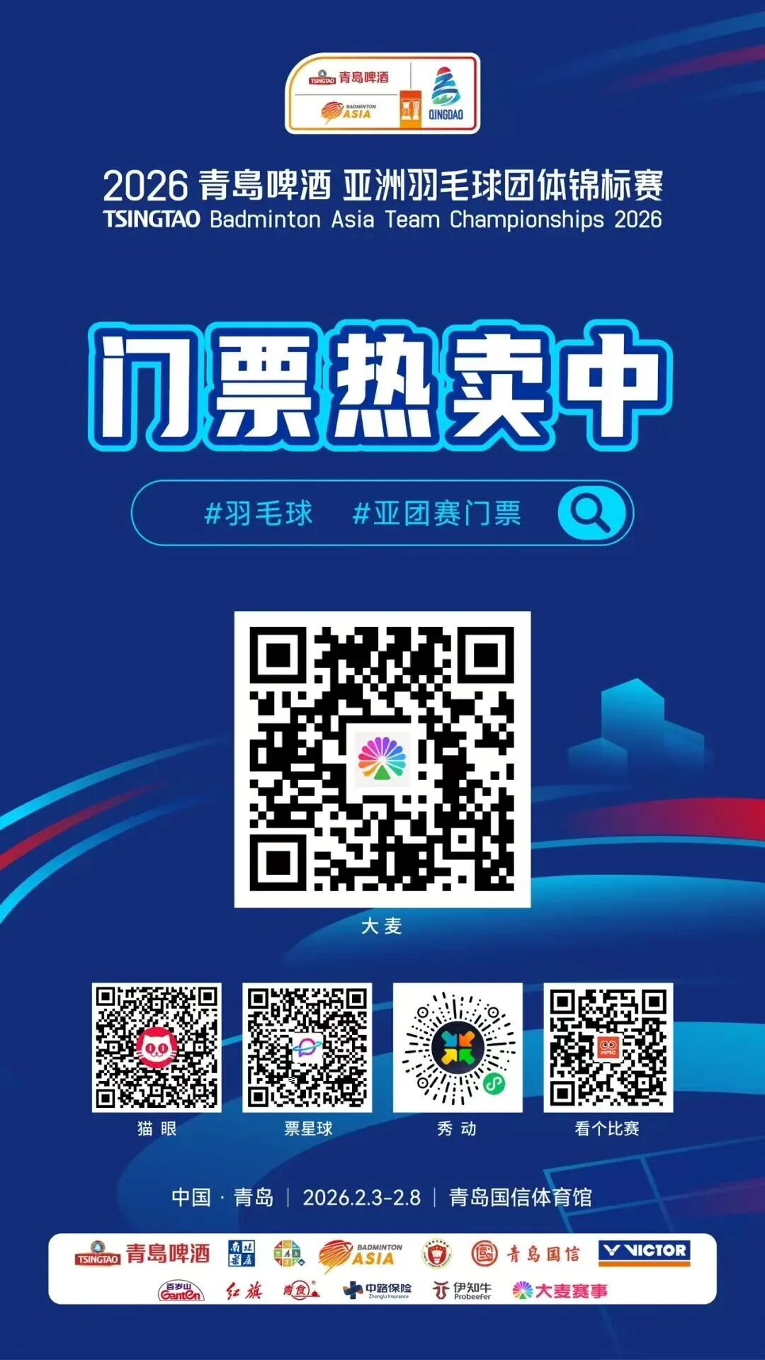 随着“一球成名”的圆满收官,2026青岛啤酒亚洲羽毛球团体锦标赛也即将正式拉开战幕。作为通往汤尤杯的重要舞台,本届亚团赛汇聚亚洲顶尖羽毛球力量,球星云集,团体荣耀一触即发。接下来,真正属于职业赛场的巅峰较量即将在青岛国信体育馆上演——速度、力量、意志与荣耀,将在这里正面碰撞。2月3日-8日,让我们走进赛场,共同见证亚洲羽坛的最高水平对决,与世界级赛事同频,为热爱呐喊,为团魂而战。